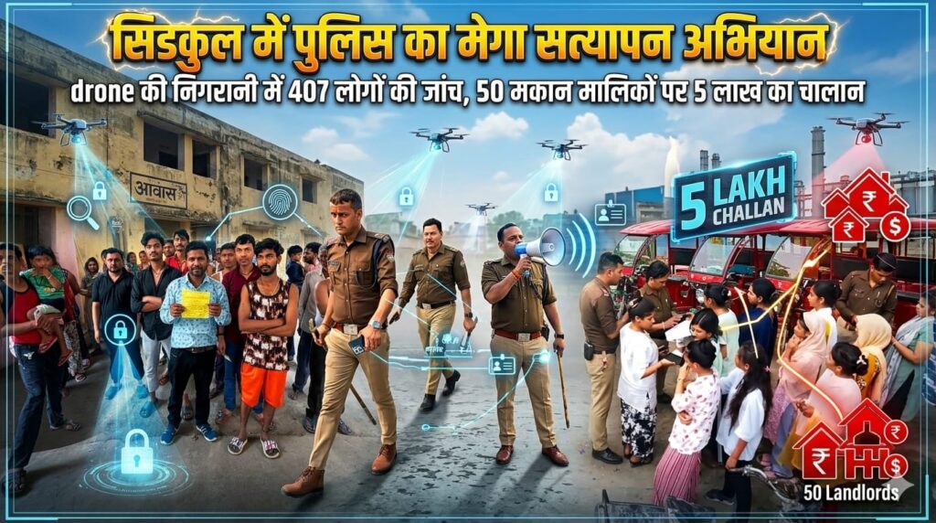 सिडकुल में पुलिस का मेगा सत्यापन अभियान ड्रोन की निगरानी में 407 लोगों की जांच, 50 मकान मालिकों पर 5 लाख का चालान