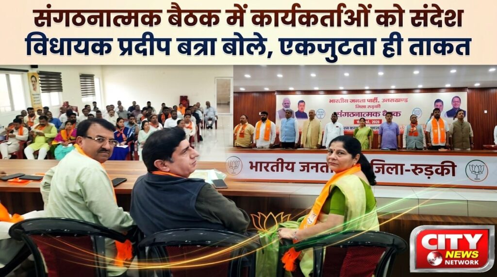 रुड़की: भाजपा जिला कार्यालय मे आज एक महत्वपूर्ण बैठक का आयोजन किया गया जिसमें पार्टी की नीतियों एवं सरकार द्वारा संचालित जन कल्याणकारी योजनाओं को आमजन तक प्रभावी ढंग से पहुंचाने पर विशेष जोर दिया गया। बैठक के दौरान रुड़की विधायक प्रदीप बत्रा ने संगठन को और अधिक मजबूत बनाने को सर्वोच्च प्राथमिकता बताते हुए कहा कि पार्टी की असली ताकत उसके समर्पित कार्यकर्ता हैं। विधायक बत्रा ने कार्यकर्ताओं से सीधे संवाद करते हुए आगामी योजनाओं, संगठन विस्तार और जनकल्याणकारी नीतियों के प्रभावी क्रियान्वयन पर गहन मंथन किया। उन्होंने कहा कि केंद्र में नरेंद्र मोदी के ‘सबका साथ, सबका विकास’ के विजन और प्रदेश में पुष्कर सिंह धामी के नेतृत्व में रुड़की क्षेत्र निरंतर प्रगति की ओर बढ़ रहा है। विधायक बत्रा ने दो टूक कहा कि संगठन की मजबूती ही चुनावी सफलता की कुंजी है, और इसके लिए हर कार्यकर्ता को जिम्मेदारी के साथ सक्रिय भूमिका निभानी होगी।